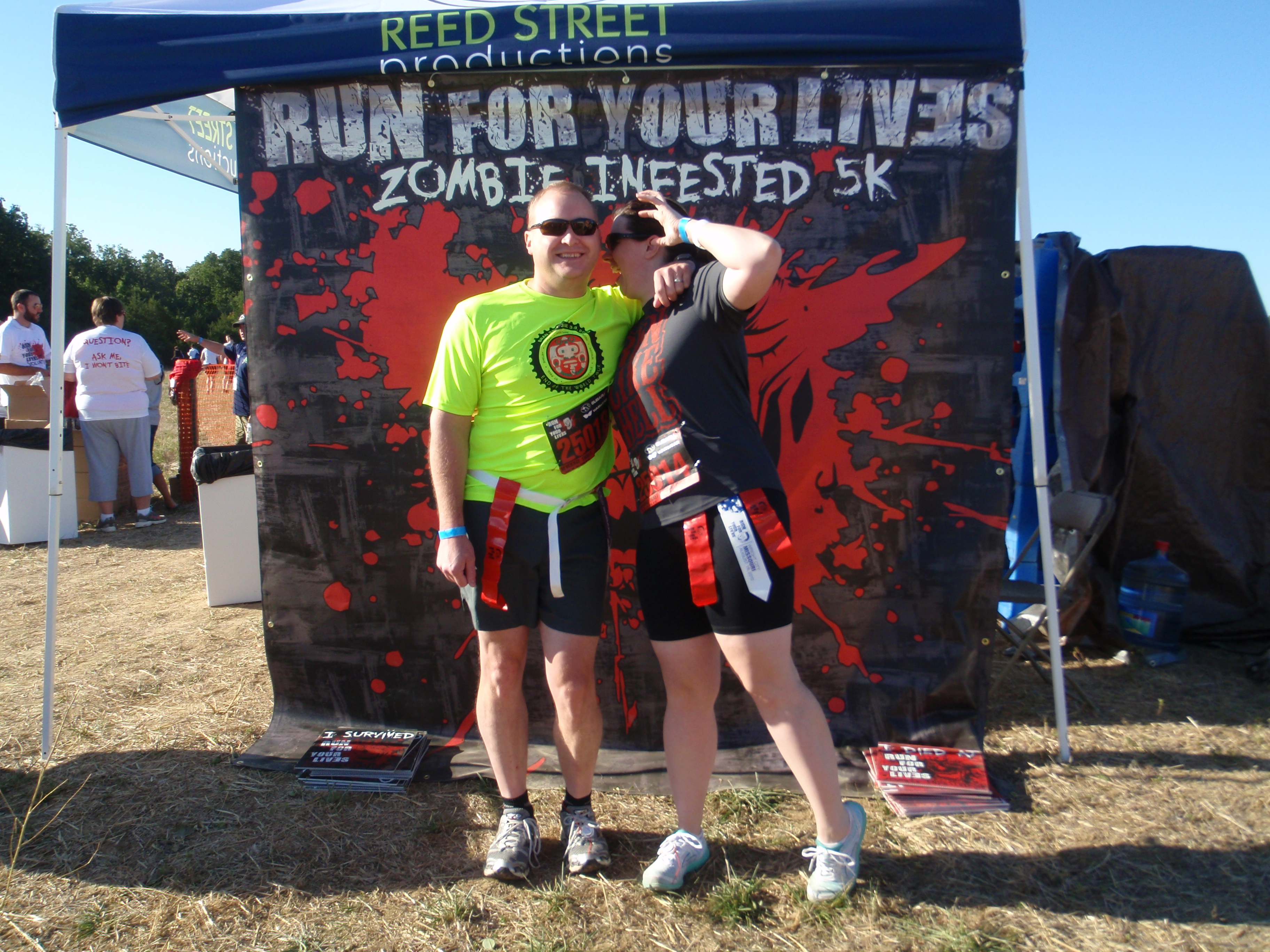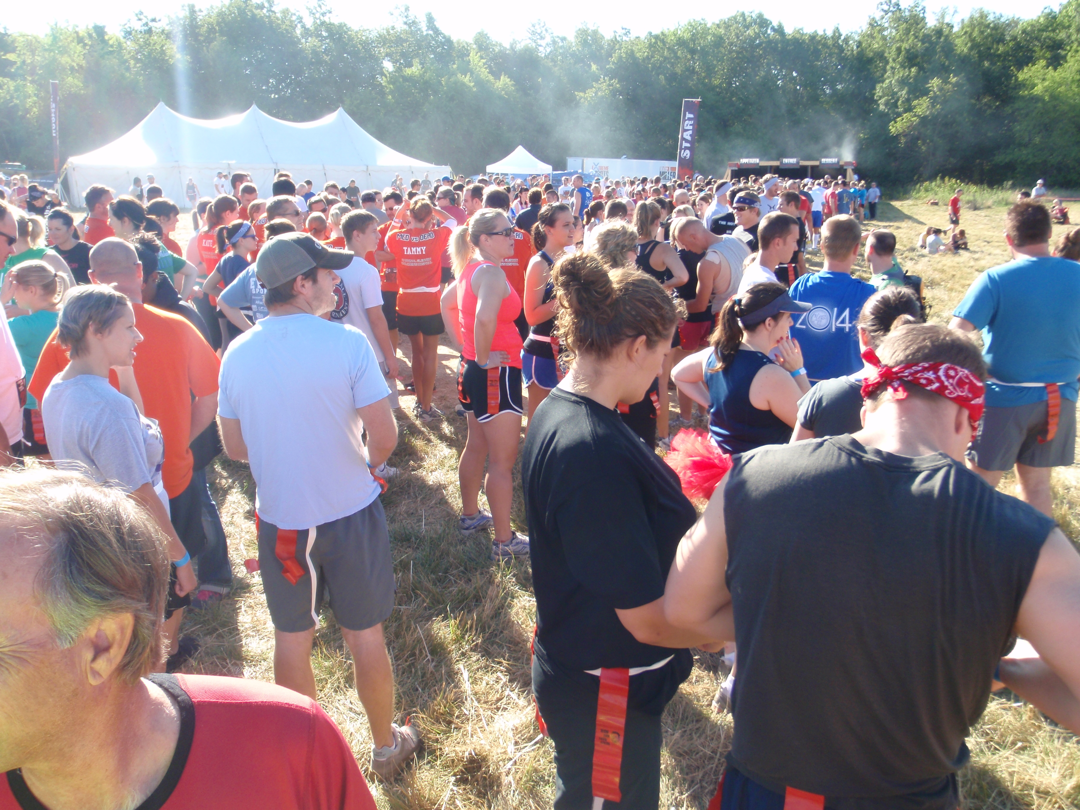 We signed up, not knowing what we were getting into. Â We were chased, we climbs walls, we ran up and down hills, we waded through muddy water, we went down a huge slide (that I completely froze at the top of…holy h*ll that was a long ways up, and….we were electrocuted. Â That’s right…..electrocuted!!!!!!) Â But….we had a blast!!!!